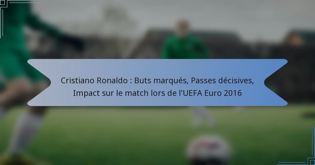 Quel a été l’impact global de Cristiano Ronaldo lors des matchs de l’UEFA Euro 2016 ?