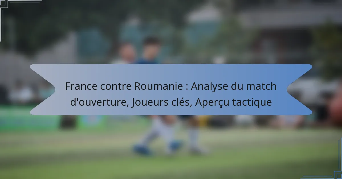 La France et la Roumanie ont présenté des stratégies tactiques distinctes lors de leur match d’ouverture, chacune visant à exploiter les faiblesses de l’autre. La France a utilisé une approche basée sur la possession, tandis que la Roumanie s’est concentrée sur les contre-attaques et la solidité défensive.