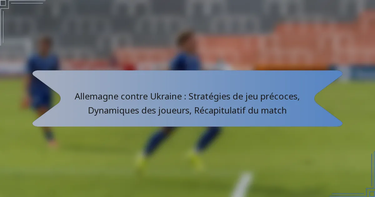 Le match entre l’Allemagne et l’Ukraine a mis en avant des stratégies de jeu précoce contrastées, l’Allemagne mettant l’accent sur le contrôle du ballon et des transitions rapides, tandis que l’Ukraine se concentrait sur une défense solide et des contre-attaques rapides. La dynamique entre les joueurs a été déterminante, car les performances clés et les interactions tactiques ont influencé le déroulement du match. Les décisions des entraîneurs et l’impact des substitutions ont également façonné le résultat, soulignant la nature complexe de cette rencontre compétitive.