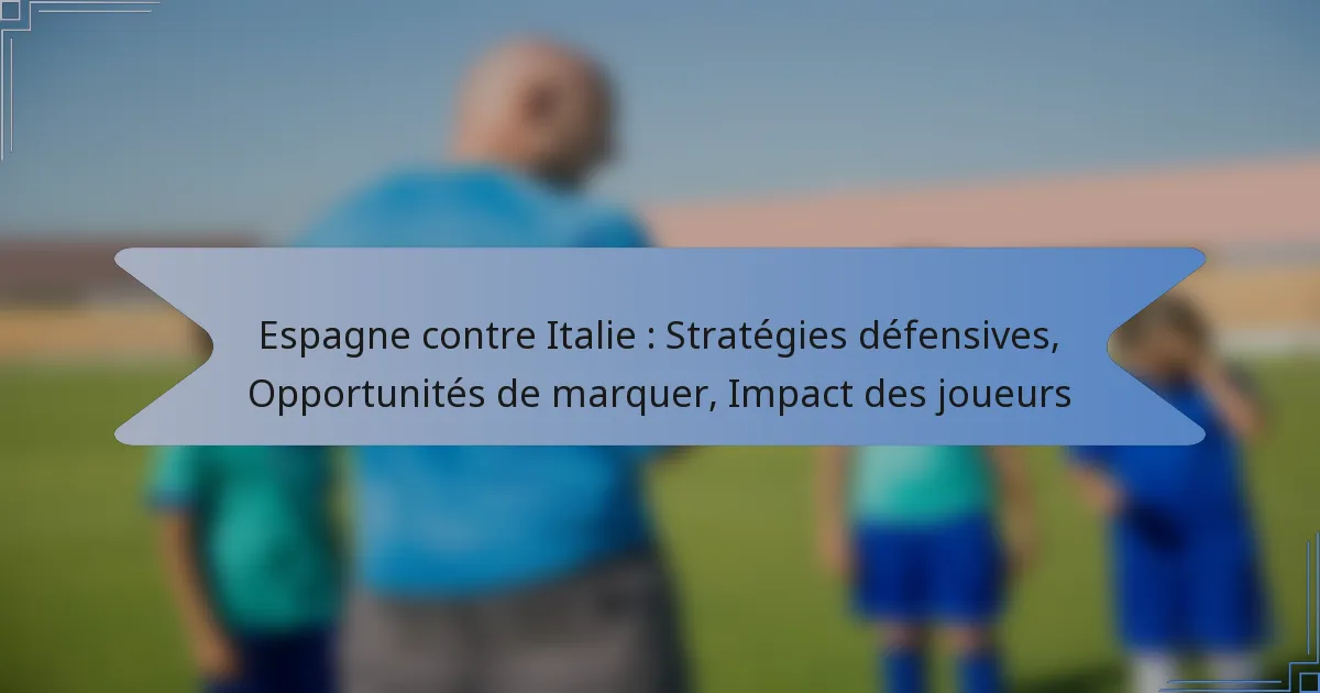 L’Espagne et l’Italie présentent des stratégies défensives contrastées qui mettent en avant leurs philosophies footballistiques uniques, l’Espagne privilégiant la possession et une ligne défensive haute, tandis que l’Italie met l’accent sur l’organisation et la discipline tactique. Les deux équipes adoptent également des approches différentes pour créer des occasions de marquer, avec les formations fluides de l’Espagne contrastant avec la dépendance de l’Italie à des joueurs offensifs clés. L’impact des joueurs individuels est crucial, car leurs compétences et rôles tactiques façonnent significativement la dynamique des matchs entre ces deux puissances du football.