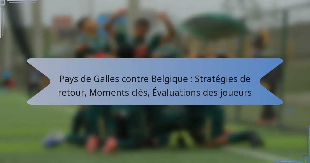 Le match entre le Pays de Galles et la Belgique a mis en lumière les diverses stratégies de retour des équipes, soulignant les changements tactiques et les substitutions impactantes. Des moments clés tout au long du match, y compris des buts décisifs et des décisions arbitrales, ont joué un rôle crucial dans la détermination du résultat. De plus, les performances individuelles des joueurs ont été déterminantes, avec des contributions remarquables et des erreurs critiques influençant la dynamique du jeu.